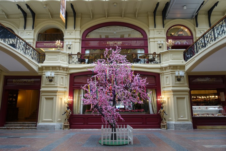 GUM department store which turns out to be mega famous but I hadn’t a clue and stumbled upon it thinking I’d entered a fairytale. People seem to go here to pose with blossom, drink insanely sugary drinks and eat pastel coloured ice cream. It’s heavenly.