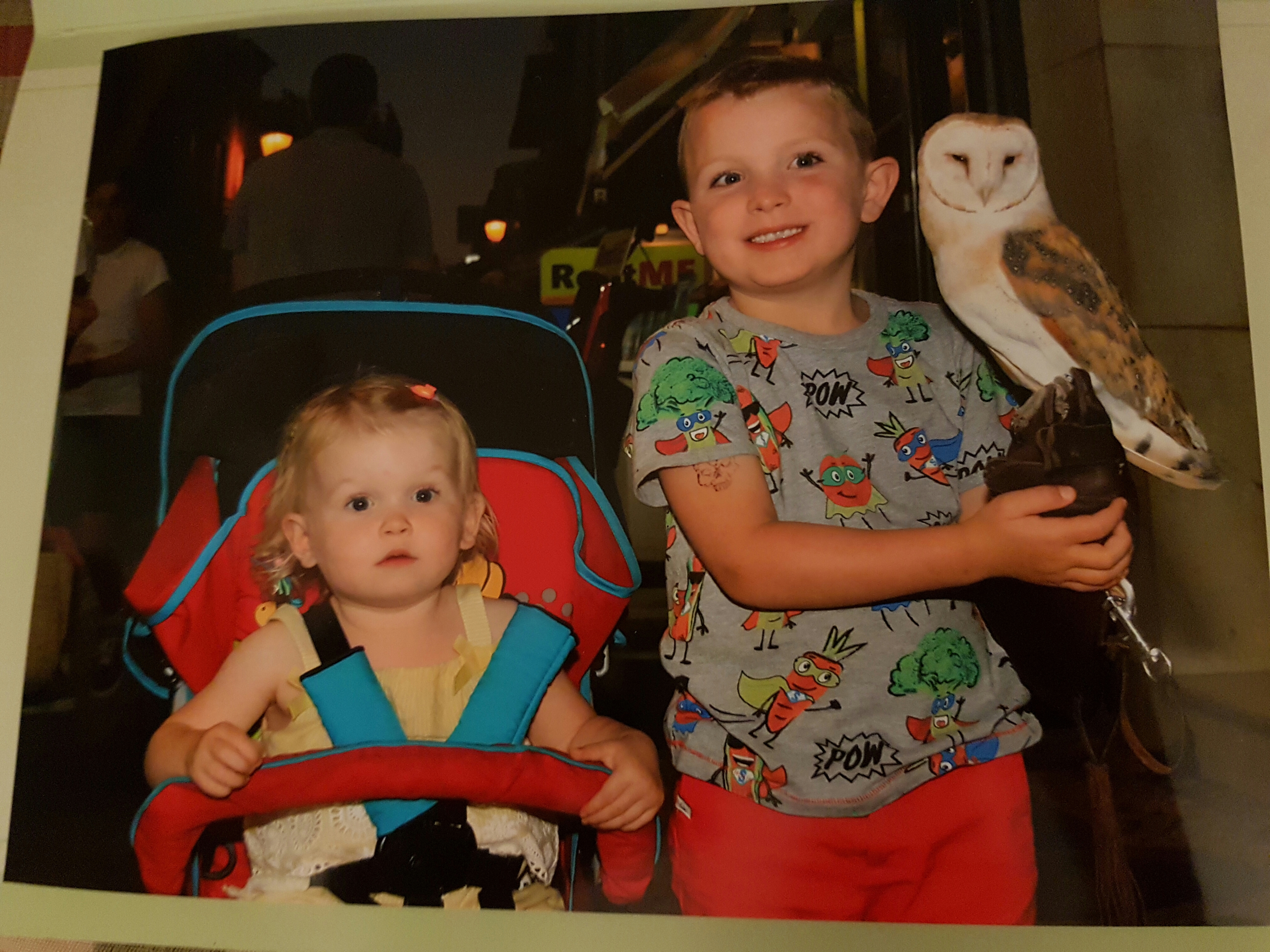 Another evening we were accosted by a group of people with an owl, a parrot and a bearded dragon. We spent 20 mins hilariously getting James to pose with these animals. Belle loved the owl and the parrot but had serious issues with the lizards. She just kept pointing at their scaly claws and crying. We bought two photos because it was totally worth it.