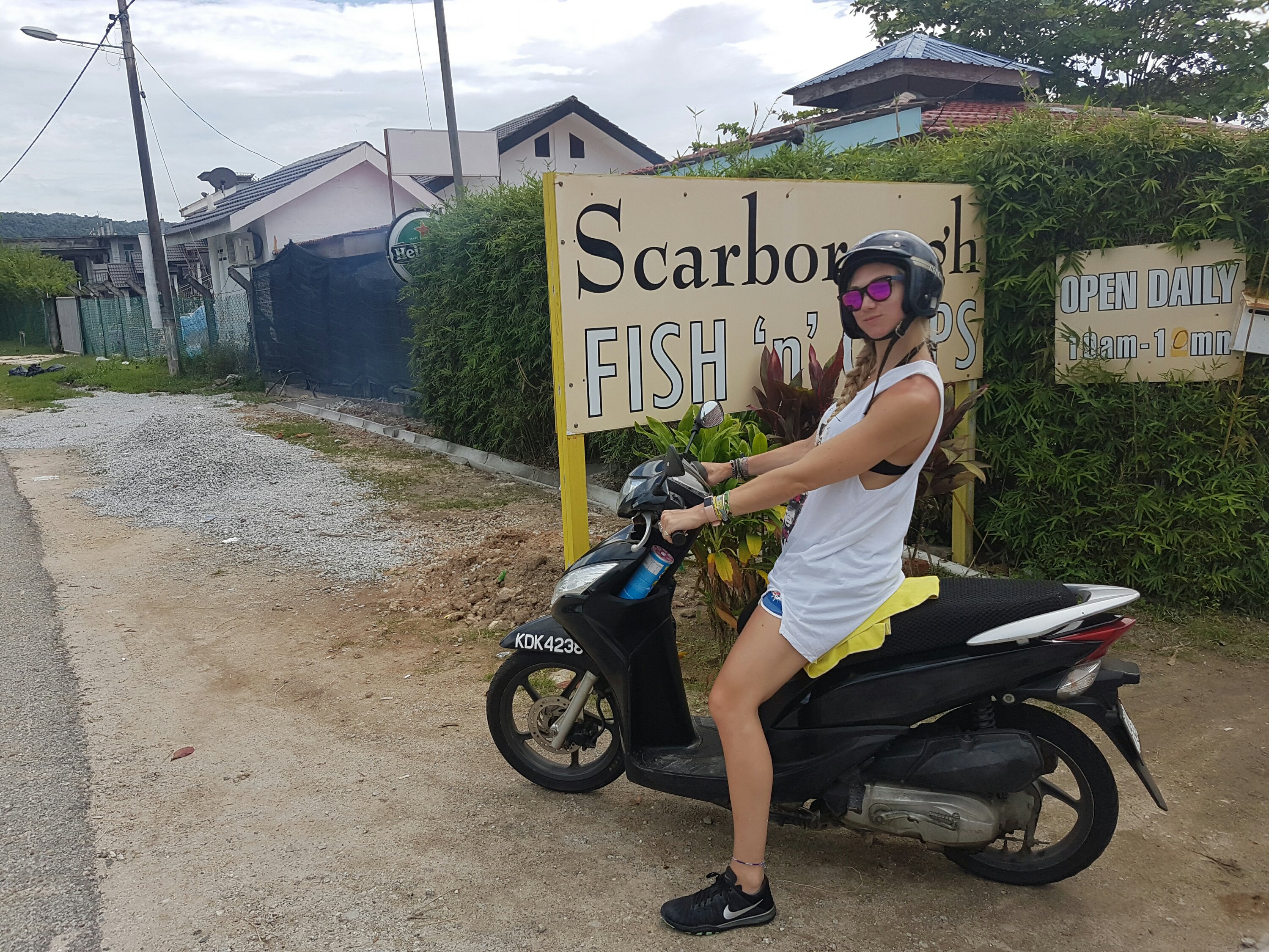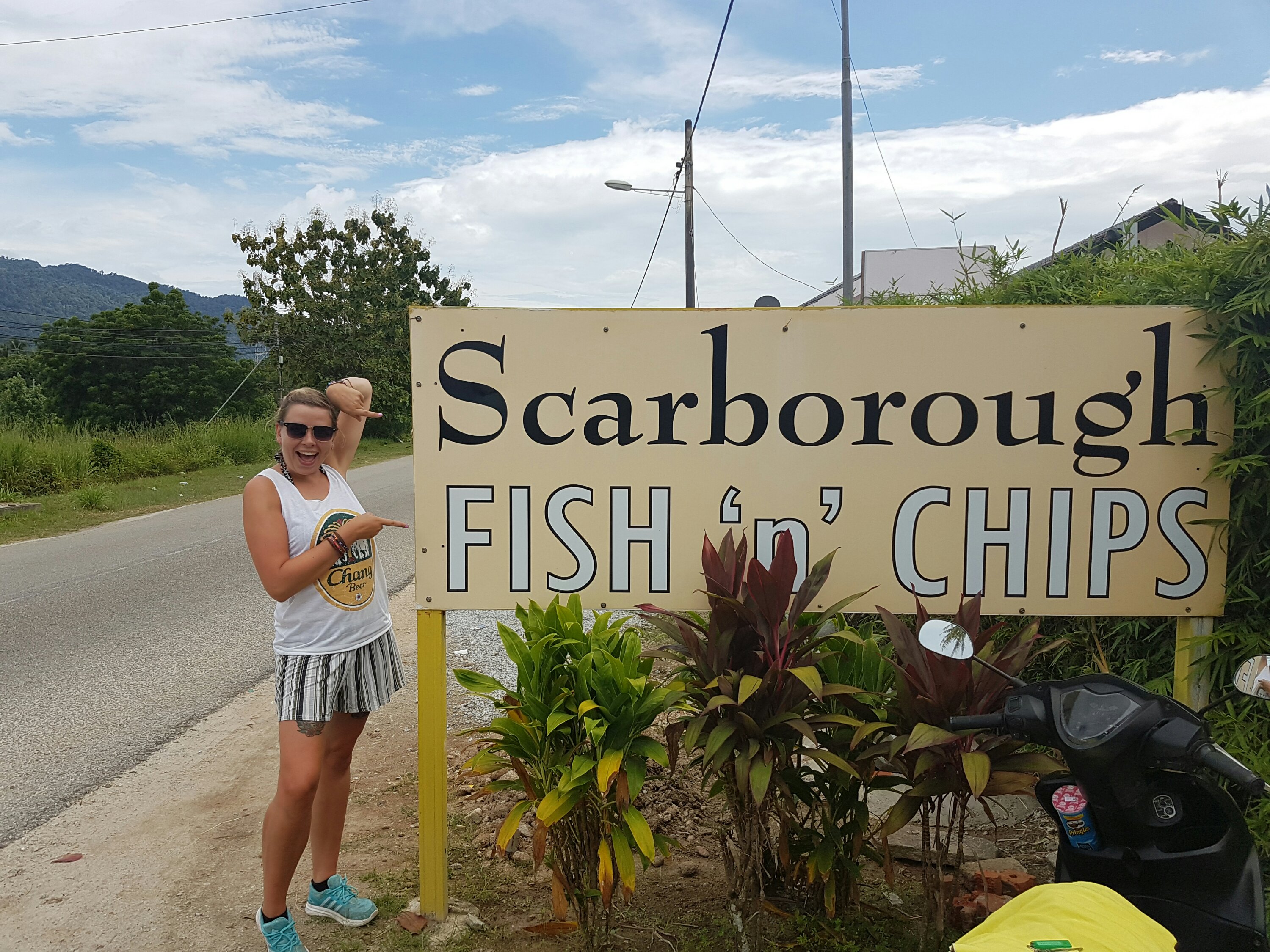We lay down all day only being interrupted once by a group of men who asked to take a photo of us. This seems to happen most of the time we go to the beach. Around half 2 it started spitting (IT’S SPITTING EVERYBODY IN- never gets old) so we retreated to “Scarborough” fish n chips. YORKSHIRE IN LANGKAWI? I was excited. Sadly there was not a Yorkshire folk in sight. However they did do a good chicken schnitzel so you win some you lose some.