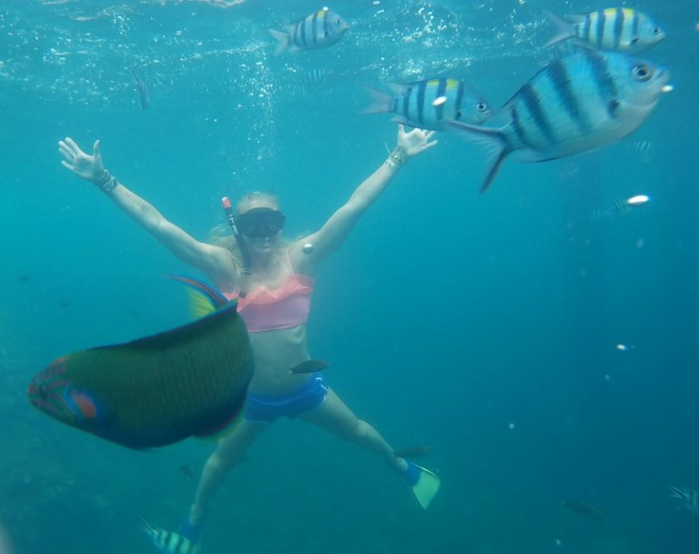 We set off to swim around the corner of Tuna bay (bigger island- get a water taxi easy) because we had been informed by Jeffrey the boat man that this was the best place to see stuff. It was pretty cool.