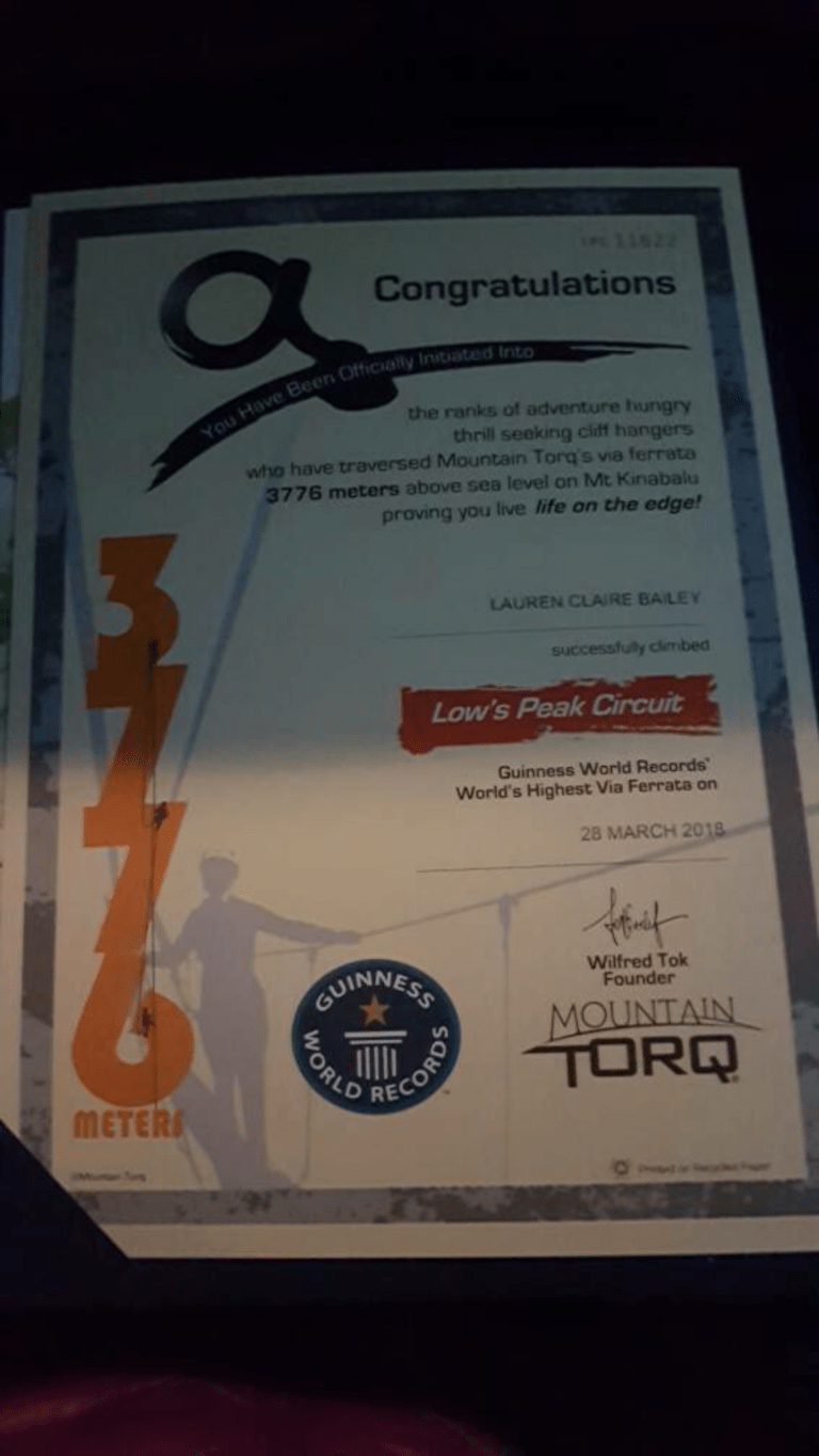 We finally arrived back at the bottom of the mountain at 6pm. Just a casual 16 hours of climbing later. We were broken people but we got two cool certificates.