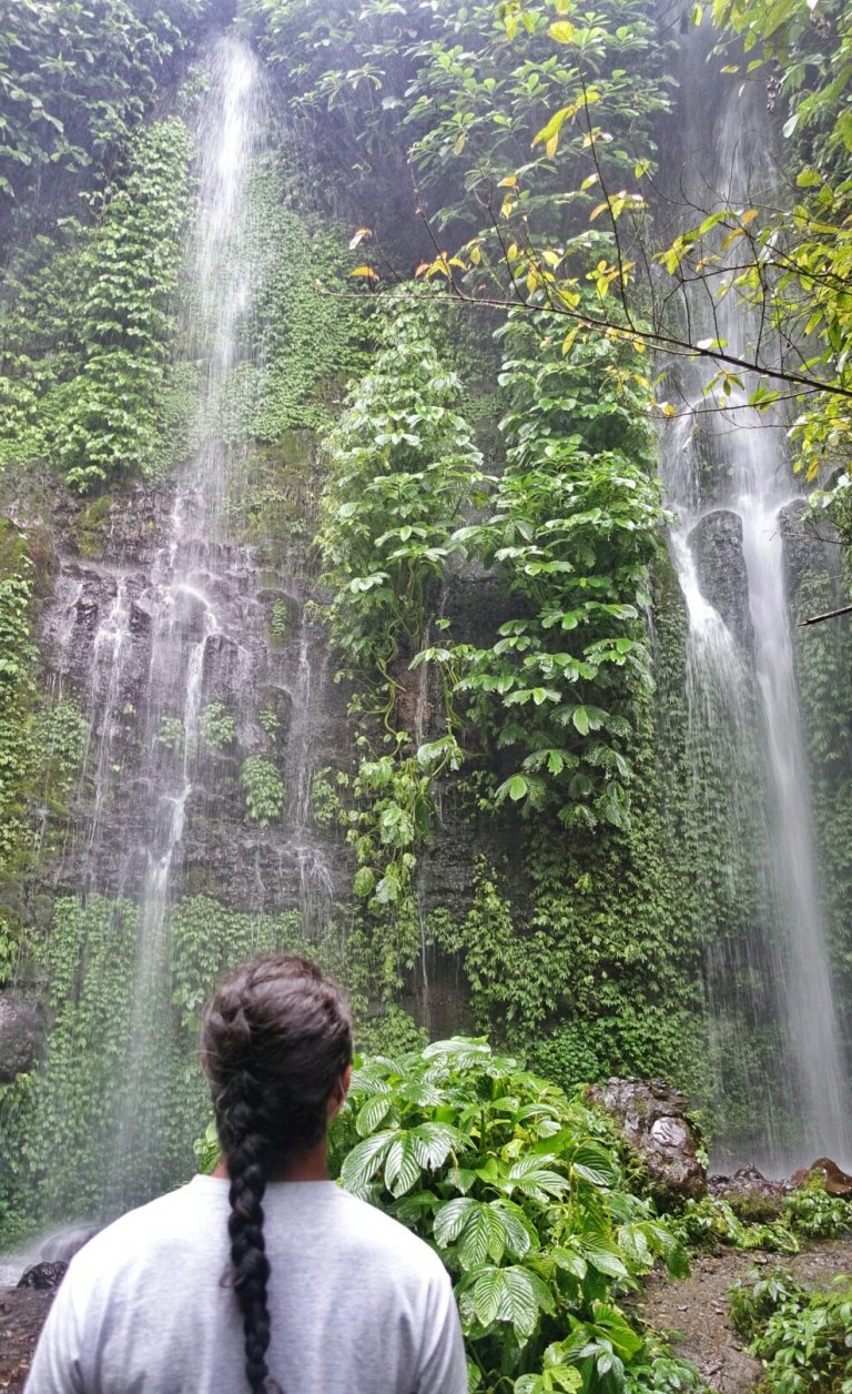 After a few days of beaches Asraf requested “green” and of course I was happy to find a green space to explore. We decided to make the journey to Rinjani National Park (Mt Rinjani we will return for you some other time) in search of waterfalls. Well, this was one of the two dramatic events of the week. So on arrival we were pushed into a room and told to pay 180,000rp to visit the waterfalls. We were told we needed a guide to accompany us. Ok fine. Then without really understanding what was going on because the conversation was all in Bahasa suddenly there were motorbikes. Well that’s quite an anxious situation for me naturally so I asked why we have to get on a bike. Asraf told me the guide said we have to travel by bike to the waterfall and it was a very short journey. Trying to be calm I said okay, Asraf would drive the bike and the guide would take a separate one. That’s safer in my opinion than being driven by a stranger. Then there were no helmets. “It’s not very far” said the guide. Trying not to completely freak out and trying very hard to block out tears I got onto the bike. We were on the bike for maybe 30 seconds before the words “I don’t like this let me off” started coming out of my mouth along with “This is dangerous let me off”. I was having some kind of flashback combined with premonition of imminent death. So Asraf stopped immediately, looked concerned and stressed and I got off the bike ON THE WRONG SIDE whilst bursting into tears with anxiety and frustration. If you’ve been on a bike you know what happens when you do that. You get a pretty nasty burn from the exhaust. So, that is what happened to my leg. Congrats to me. No more bikes.