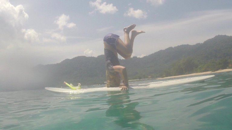 Alice decided to do a head stand on the paddle board. It has taken me a good year of yoga to do a head stand unaided on land so I was not feeling as though this was going to go well for me. Happy to be the videoer.