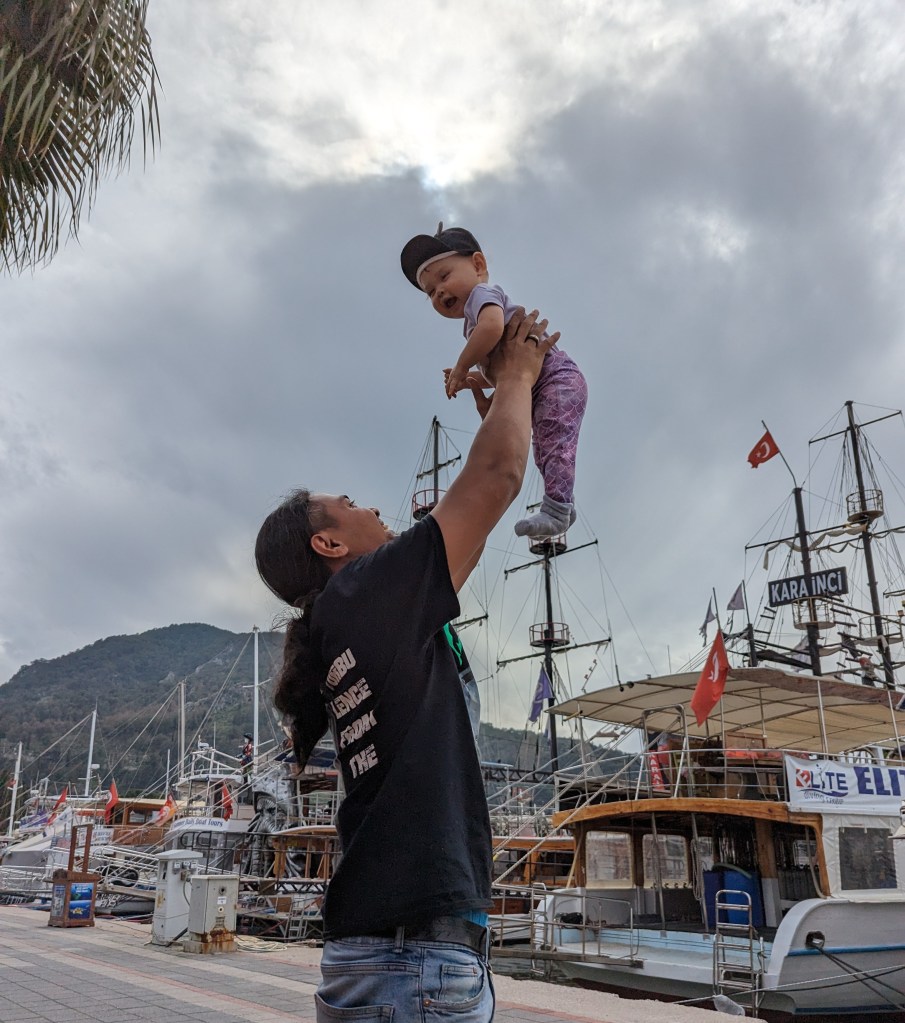 We arrived into Antalya and spent the first night at Anatolian Apart Hotel. This was on the opposite side of the coast from the old town. Our flight was, as ever, pretty horrific with our stuffy nosed eight month old baby and a lack of cold air blowing through the cabin. Once we arrived we were so happy to see blue sky and sunshine! We collected our car and car seat from the rental company, Asraf remembered how to drive a manual car backwards and off we went. I’ve been to Antalya once before but couldn’t really remember it. The area we stayed in on the first night was very modern and very Russian with Russian sign boards and Kazkah restaurants! We laughed that we flew all the way to Turkey to still be surrounded by Russian. We walked along the promenade and had a drink but that’s about all we did as we were so tired. Little did I know at this point I was about to embark on ten days of sleep deprivation and delirium with a baby that would not and could not sleep on holiday!