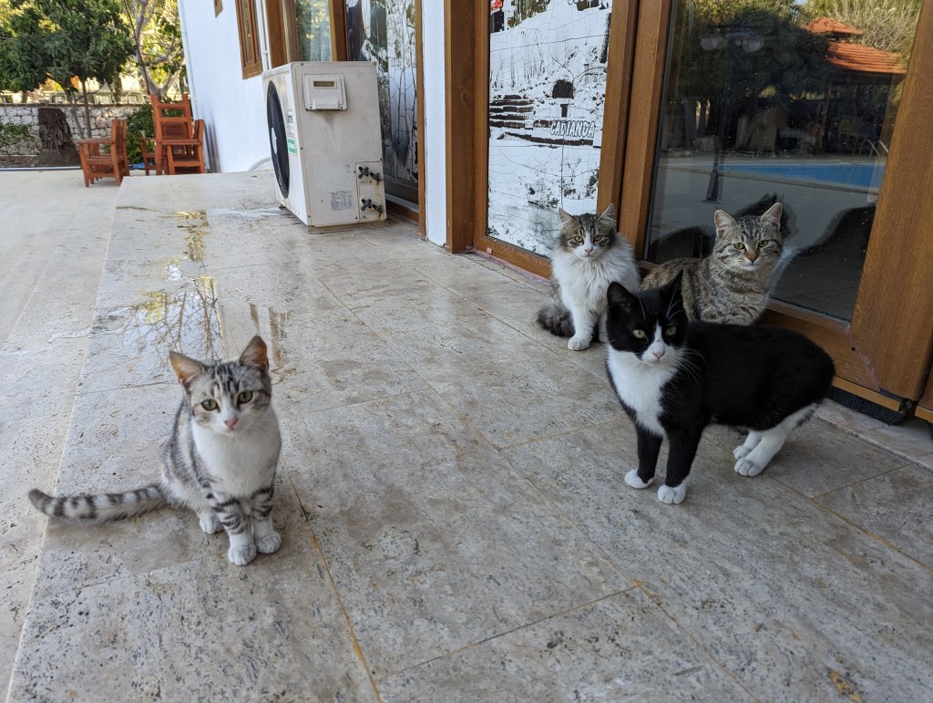 Our accommodation in Fethiye was Kilim hotel and it was very friendly. Everyone was very chatty and we had breakfast with a guy from Poland and a woman from Iran. They were really interested in Kazkahstan and promised to visit us! There were so many cute cats everywhere in Turkey but here especially.