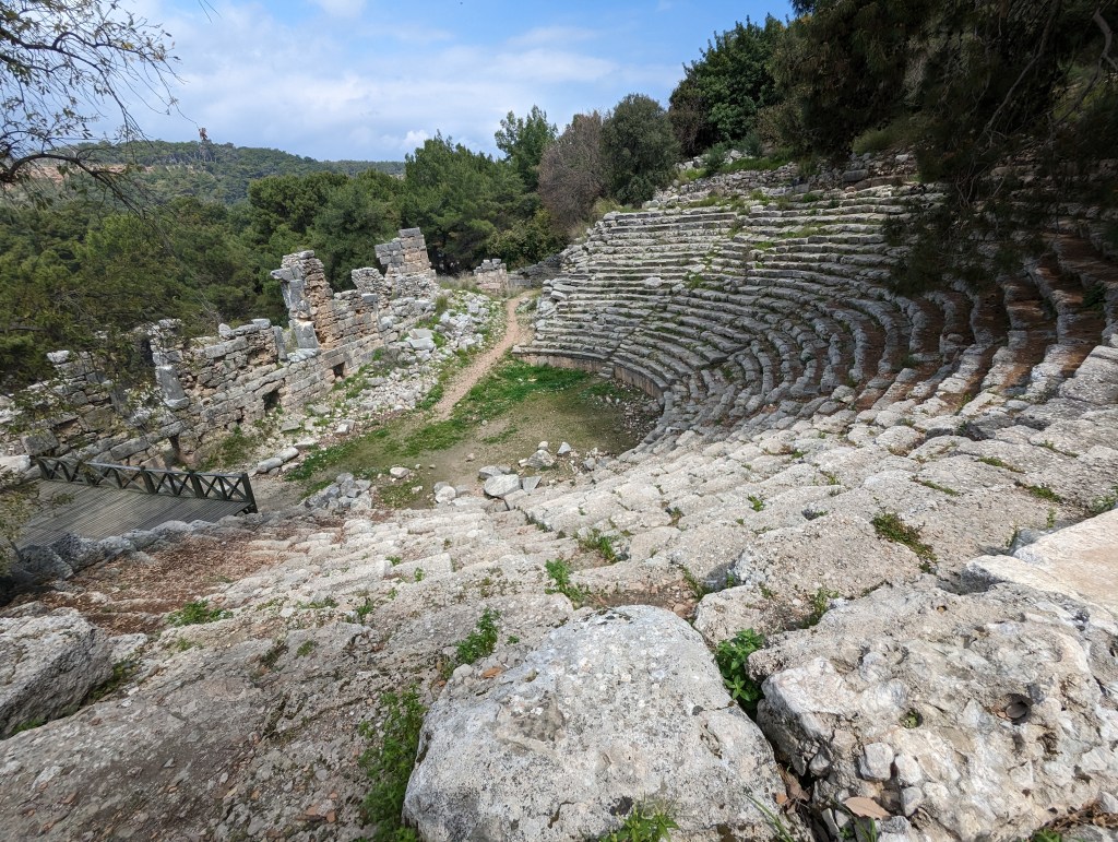 The next morning we got up to go to Termessos the ancient city. It had been recommended to us by Flora and did not disappoint. At only 12 TL entrance it was also a bargain. The theatre was incredible with a backdrop of mountains. The ruins were really interesting and there was lots of information to read. We were both really impressed. We were the only people there apart from a couple from Germany and Zimbabwe who we chatted to on the walk back down. They said they had been expats for many years and also had one daughter who they took all over the world with them. We loved this place so much and over our trip we saw many ancient ruins but this one was our favourite.