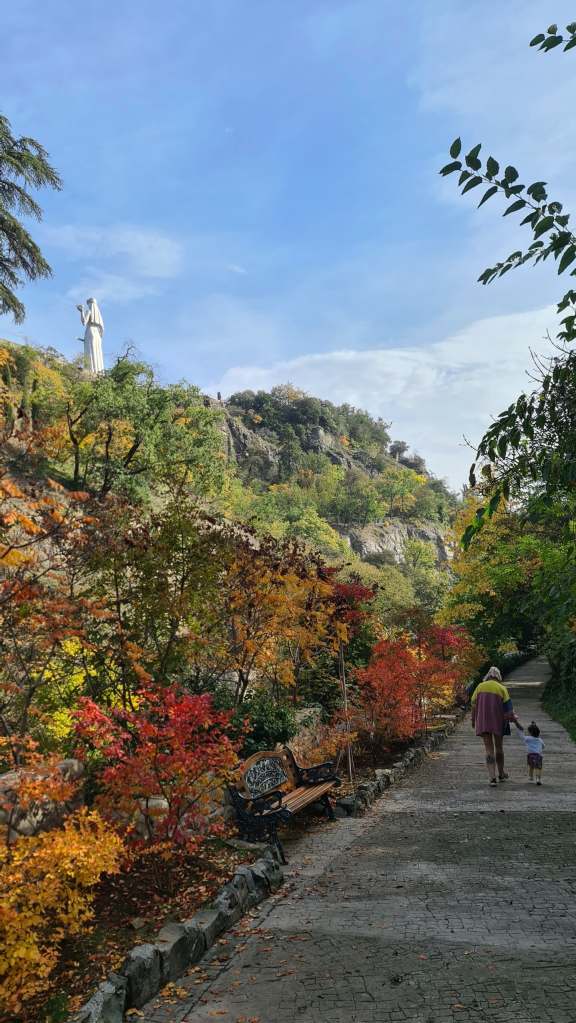 On our first day we took the cable car up to see Mother Georgia and the views of the city. Ayla slept through the entire thing. We were so lucky with the weather as it was mid 20s but with the autumn foliage- perfect combination.