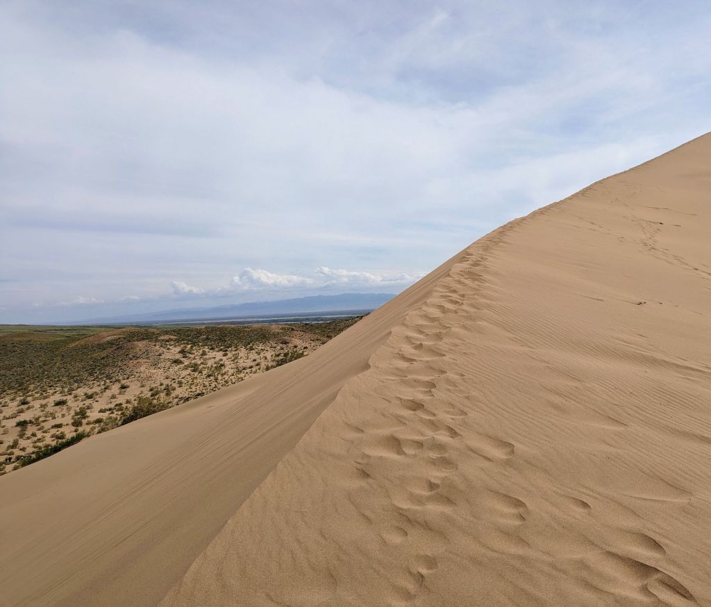 Altyn Emel is about 4 hours away from Almaty city and this is considered close by Kazakh standards. We stopped off at Konaev (Kapchagay) on the way for some fake beach time. Kazakhstan being far, far away from the ocean is something I’ve really struggled with. As the lake at Kapchagay is large enough to have a tide, you can almost pretend you’re at the proper beach! We joined our friends for this roadtrip along with their two and a half year old daughter, teenage son and dog. All in one car! I was sat in-between Leia and Ayla, which is obviously the best seat in the car if you want to describe every single mundane thing you can see out of the window, or lose all your snacks to snatching fingers!