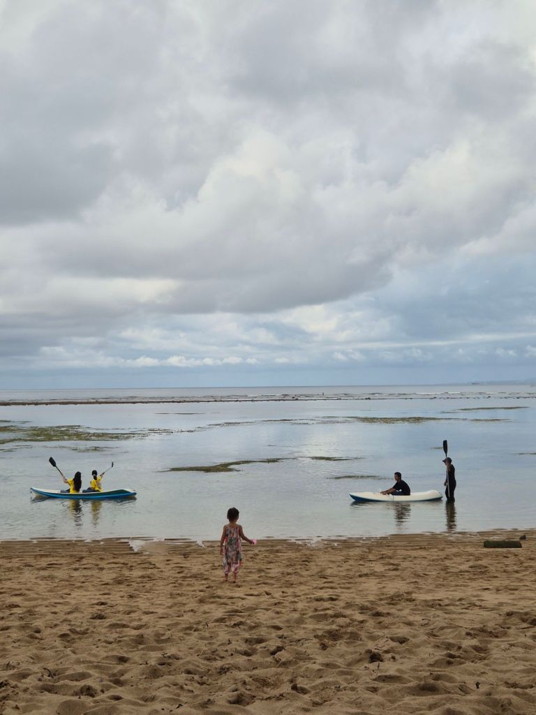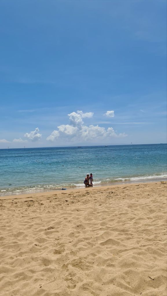 We stayed at Arena Living for 3 nights in Sanur. Sanur itself is nothing to write home about. It has a nice promenade beach front with bars and restaurants but the beach is dirty and litter galore. If you have children, check out Shotgun Social for a great restaurant with play area and kids club. Moreno Beach Bali has beach front seats and nice cocktails. If you want pristine tropical beaches, this won’t deliver. The visibility and calmness of the water did improve later in the afternoon though.